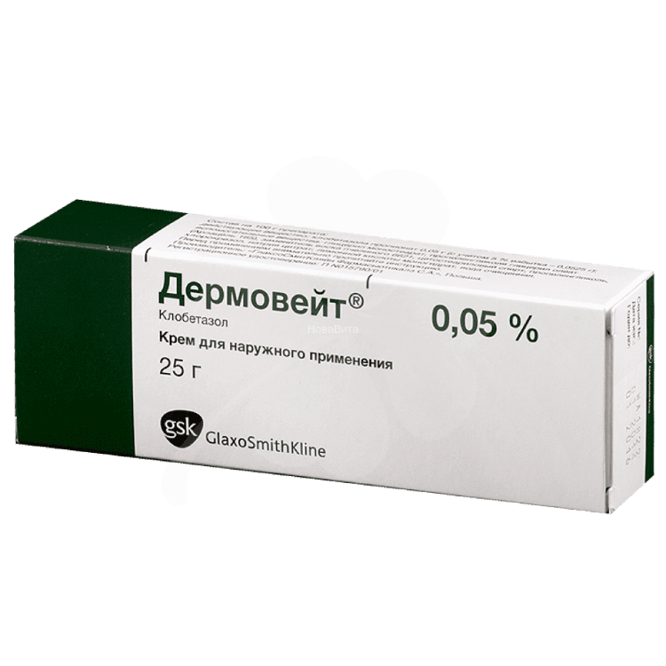 Дермовейт - крем для наружного применения, 100 г содержит клобетазола пропионат 0,05 г, в тубах по 25 г.