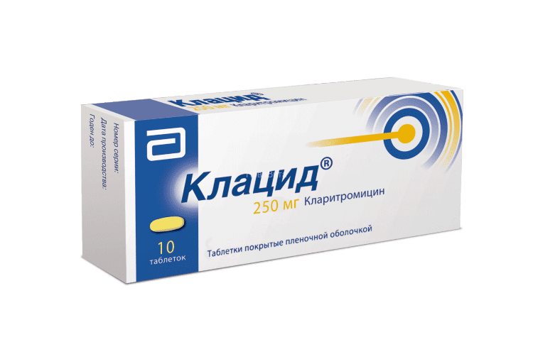 Клацид таблетки, покрытые оболочкой, одна содержит кларитромицина 250 мг, в контурной ячейковой упаковке 10 шт., в картонной пачке 1 упаковка.