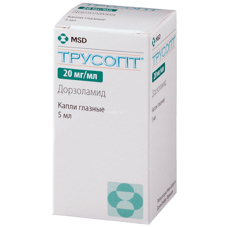 Капли глазные, 1 мл содержит дорзоламида гидрохлорид 20 мг. Во флаконе 5 мл капель.