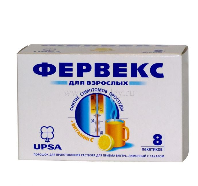 Порошок для приготовления раствора для приема внутрь (с сахаром), 1 пакетик содежит парацетамол 500 мг, фенирамина малеат 25 мг, аскорбиновая кислота 200 мг. Вспомогательные вещества: сахароза, лимонная кислота безводная, аравийская камедь, сахарин растворимый, ароматизатор лимонно-ромовый. В упаковке 8 пакетиков.