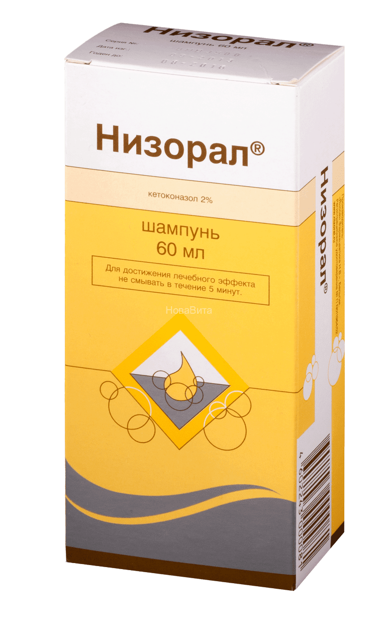 Низорал шампунь, 1 г содержит кетоконазол 20 мг, во флаконах по 60 мл.