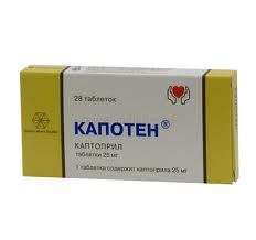 Капотен - таблетки, одна содержит каптоприла 25 мг; в упаковке 28 шт.