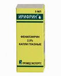 При проведении офтальмоскопии используются однократные инстилляции 2,5% раствора Ирифрина. Как правило, для создания мидриаза достаточно введения 1 капли в конъюнктивальный мешок.