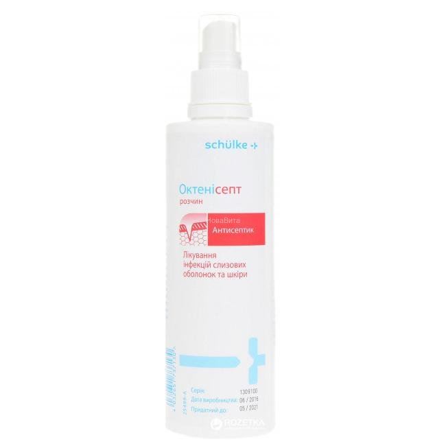 Октенисепт - раствор для местного и наружного применения, 100 мл раствора содержат октенидина дигидрохлорид 0,1 г, феноксиэтанол 2 г. Во флаконах по 250.