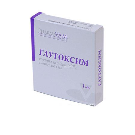 Раствор для инъекций 3%, 1 мл содержит глутоксим 30 мг. В ампулах с кольцом или точкой надлома по 1 мл. В блистере 5 шт.