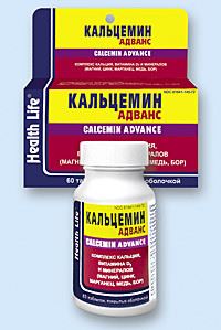 Кальцемин Адванс таблетки, покрытые оболочкой, активные вещества: кальций (кальция цитрат и кальция карбонат) 500 мг, колекальциферол (витамин Д3) 200 МЕ, магний 40 мг, цинк 7,5 мг, медь 1 мг, марганец 1,8 мг, бор 250 мкг. В упаковке 120 шт.