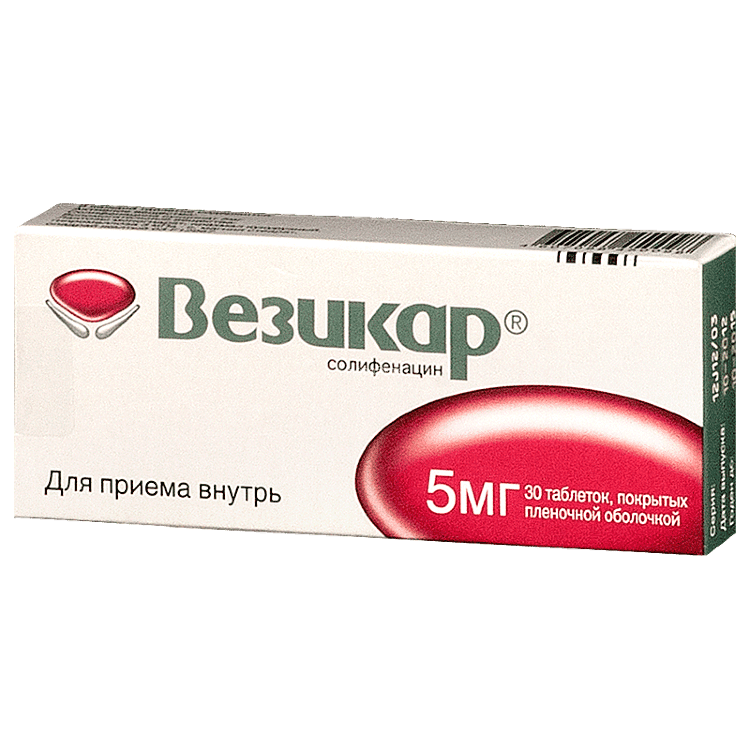 Везикар - таблетки покрытые оболочкой: 1 таблетка содержит солифенацина сукцинат 5 мг; 30 шт в упаковке.