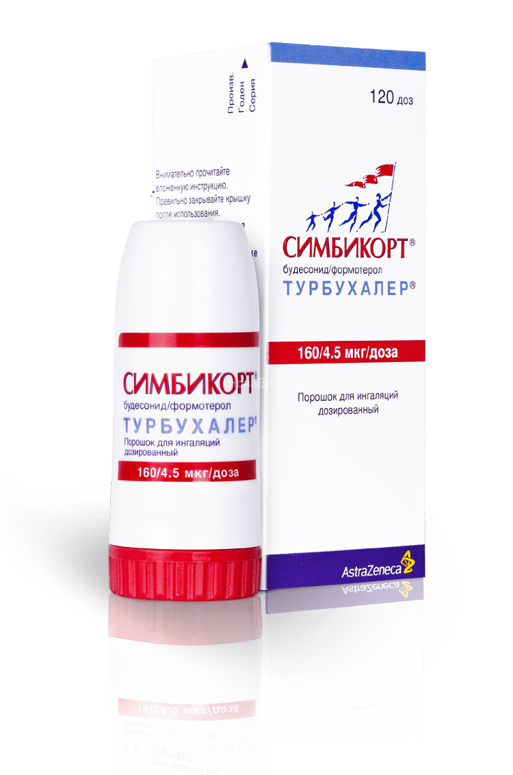 Симбикорт Турбухалер содержит формотерол и будесонид, которые имеют разные механизмы действия и проявляют аддитивный эффект в отношении снижения частоты обострений бронхиальной астмы.