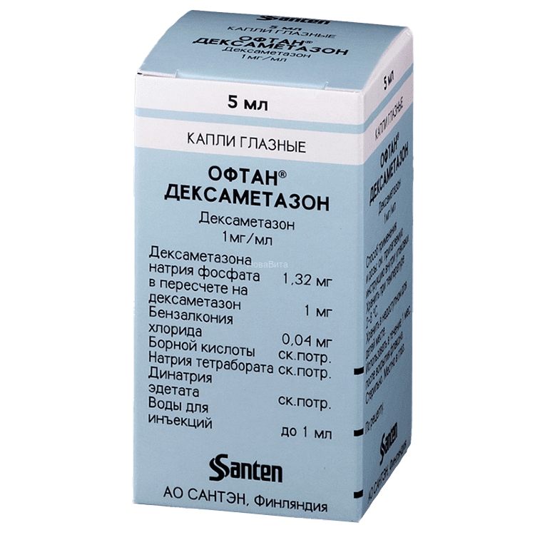 Капли глазные 0.1% 1 млдексаметазон</td> 1 мгСпособ применения и дозыВзрослым и детям старше 12 лет при острых воспалительных состояниях закапывают в конъюнктивальный мешок по 1-2 капли 4-5 раз в сутки в течение 2 дней, после уменьшения симптомов воспаления – 3-4 раза в сутки в течение 4-6 дней.