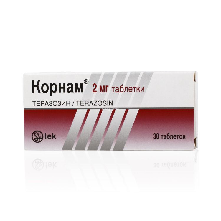 Одна таблетка содержит теразозина в виде моногидрохлорида дигидрата 2 мг; в блистере 10 шт., в коробке 3 блистера.