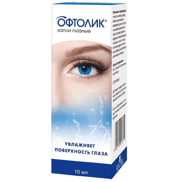 Капли глазные, в 1 мл содержится повидон 6 мг, поливиниловый спирт 14 мг, во флаконе-капельнице 10 мл.