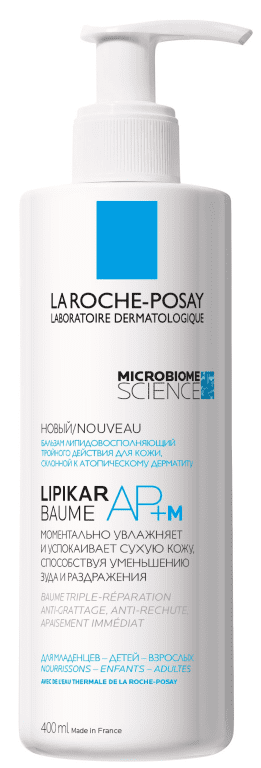 Новый Lipikar Бальзам AP+M - усовершенствованная формула бальзама тройного действия для сухой и склонной к атопии кожи.Тройной бальзам-восстановление Lipikar AP+M моментально увлажняет и успокаивает сухую кожу, способствуя, таким образом, уменьшению зуда и раздражения, интенсивно питает, длительно увлажняет, восстанавливая защитный барьер кожи. Заметно способствует продлению ремиссии.Показания к применению: очень сухая и чувствительная кожа, склонная к раздражению и зуду; кожа, склонная к атопии и аллергическим реакциям; для младенцев, детей и взрослых.Lipikar Бальзам AP+M - результат более восьми лет исследований лаборатории La Roche-Posay в области микробиома кожи. Новый липидовосполняющий бальзам Lipikar AP+M разрабатывался совместно с дерматологами с учетом особенностей сухой кожи, склонной к атопическому дерматиту. Новый комплекс ингредиентов AP+M [Aqua Posae + Microrésyl] в составе бальзама способствует регулированию микробиома кожи, а в сочетании в сочетании с термальной водой, оказывает успокаивающее действие.
