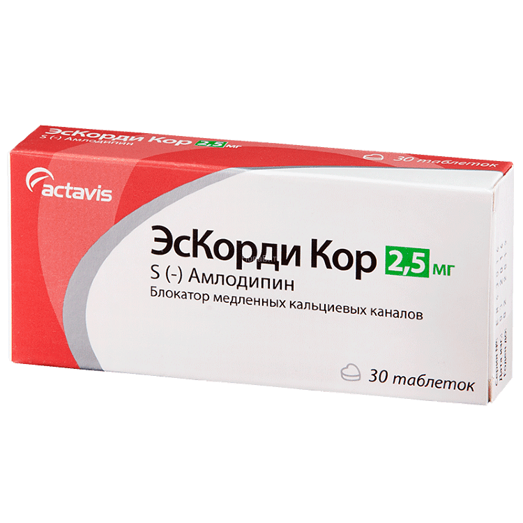 Таблетки, одна содержит амлодипин (в форме безилата) 2.5 мг. В упаковке 30 шт.
