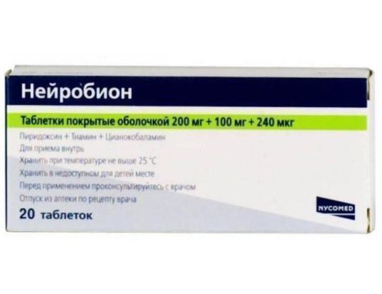 Таблетки, покрытые оболочкой, одна содержит тиамина дисульфид (витамин B1) 100 мг, пиридоксина гидрохлорид (витамин Вб) 200 мг, цианокобаламин (витамин В12) 240 мкг, в упаковке 20 шт.