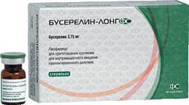 Лиофилизат для приготовления суспензии для внутримышечного введения пролонгированного действия, в 1 флаконе содержится бусерелина ацетат (в виде свободного пептида) 3.75 мг.