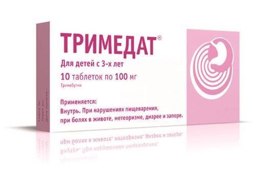 Таблетки, одна содержит тримебутина малеат 100 мг. В упаковке 10 шт.