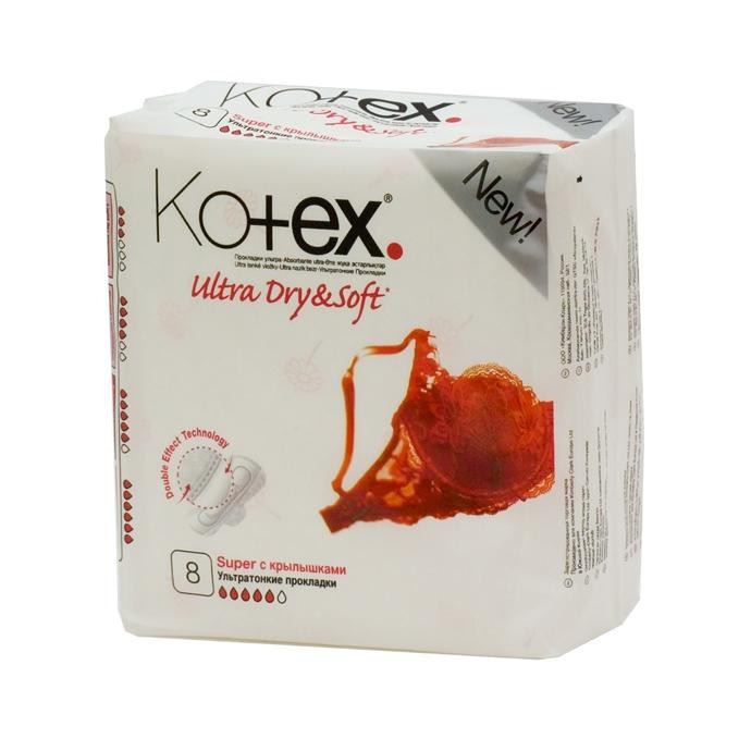 Ультратонкие прокладки КОТЕКС УЛЬТРА Софт Супер с крылышками имеют супер-впитывающая середину, с поверхностью-сеточкой, которая быстро проводит жидкость внутрь и оставляет кожу сухой.