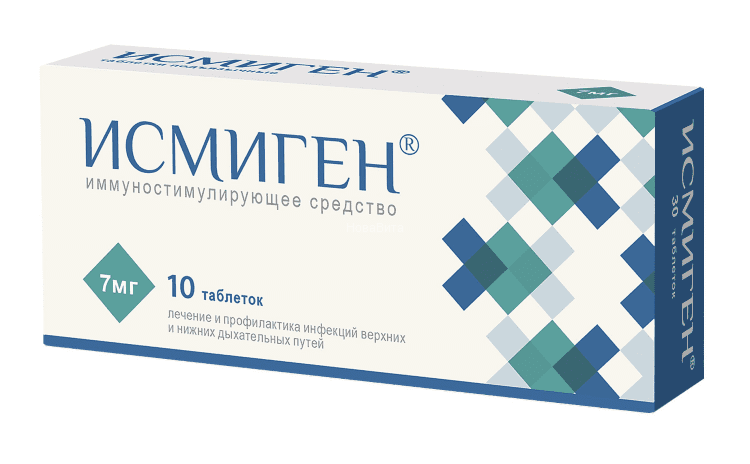 Комбинированный иммуностимулирующий препарат бактериального происхождения для сублингвального (подъязычного) приема. Представляет собой поливалентный антигенный комплекс, включающий лизаты бактерий - наиболее часто встречающихся возбудителей респираторных инфекций. Лизаты, входящие в состав Исмигена, получены путем механического воздействия.