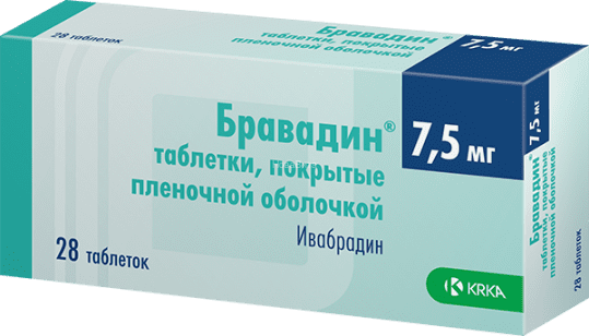 Если значение ЧСС находится в диапазоне 50–60 уд./мин, рекомендуется применять препарат Бравадин® в дозе 5 мг 2 раза в сутки.