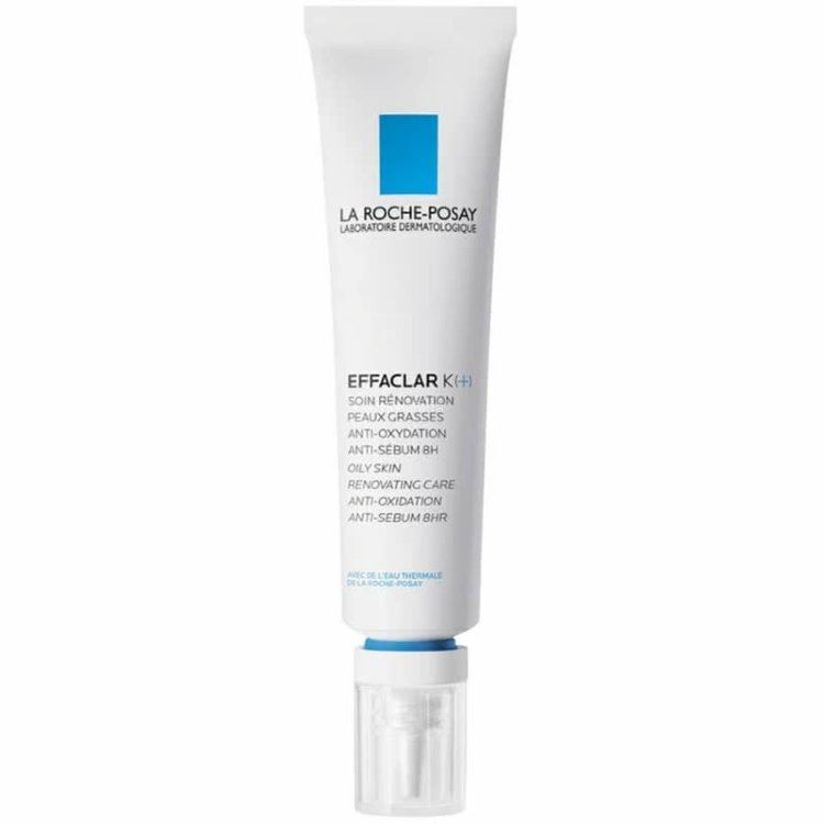 Средство для ежедневного ухода EFFACLAR K(+) сочетает в себе Липо-Гидроски-Кислоту, обладающую микроотшелушивающим действием, и комплекс [ВИТАМИН Е + КАРНОЗИН + AIRLICIUMТМ] с антиоксидативным и себорегулирующим действием в течение 8 часов.