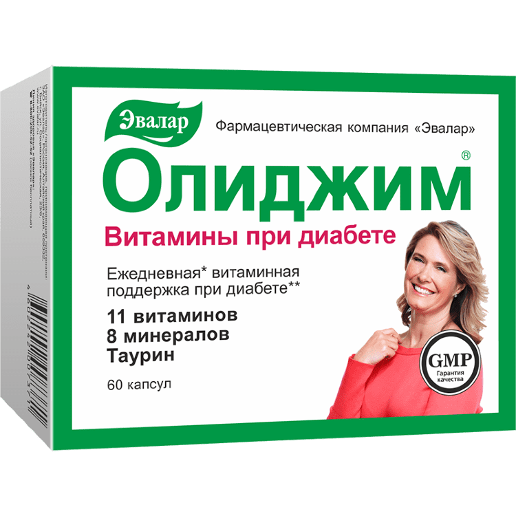 Олиджим витамины при диабете — это специально разработанный комплекс из 11 витаминов и 8 минералов, усиленных таурином, для больных сахарным диабетом.