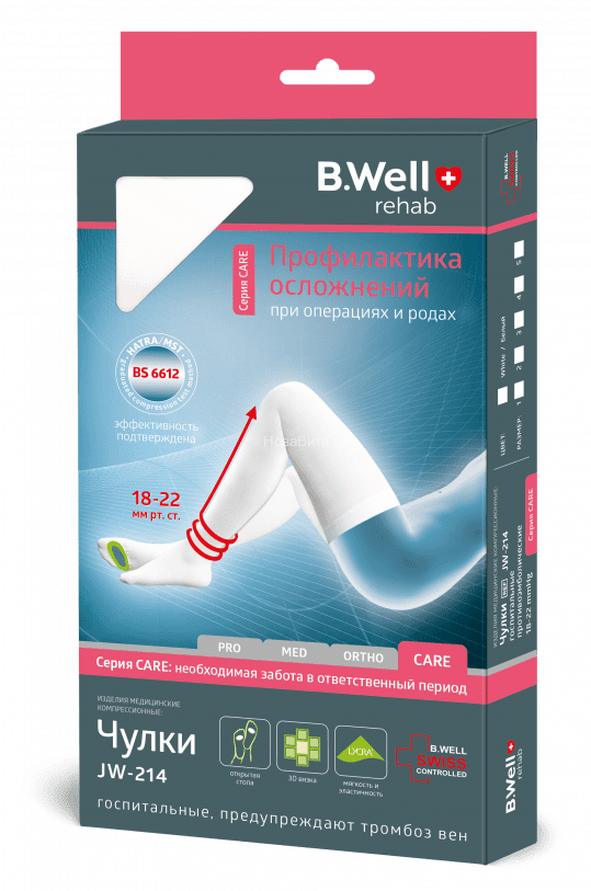 чулки компрессионные противоэмболические 18-22мм рт.ст. арт.JW214 р.5 белый B.Well