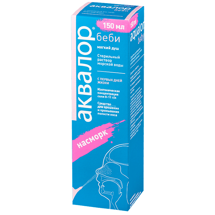 После промывания полости носа средством для орошения и промывания полости носа для детей и взрослых «Аквалор беби» повышается терапевтическая эффективность лекарственных средств, наносимых на слизистую оболочку полости носа, сокращается продолжительность респираторных заболеваний, снижается риск распространения инфекции в околоносовые пазухи и полость уха.