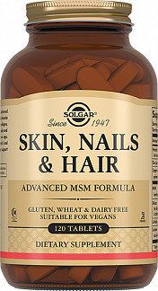 Основу комплекса «Кожа, волосы, ногти» составляет МСМ (метилсульфонилметан) – источник органической серы, основной компонент кератина (строительный элемент волос и ногтей), а также коллагена (основа кожи). Сбалансированный состав позволяет коже придавать упругость, эластичность; защищать от пагубного воздействия УФ-лучей; регулировать деятельность сальных желез; укреплять волосы и ногти.